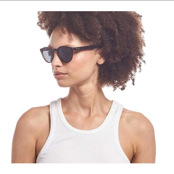 Atom is a timeless round frame and wardrobe staple. Atom in matte tortoise shell and polarised smoke mono lens is an easy unisex style, finished with signature AIRE foil temple logos in gunmetal tone.