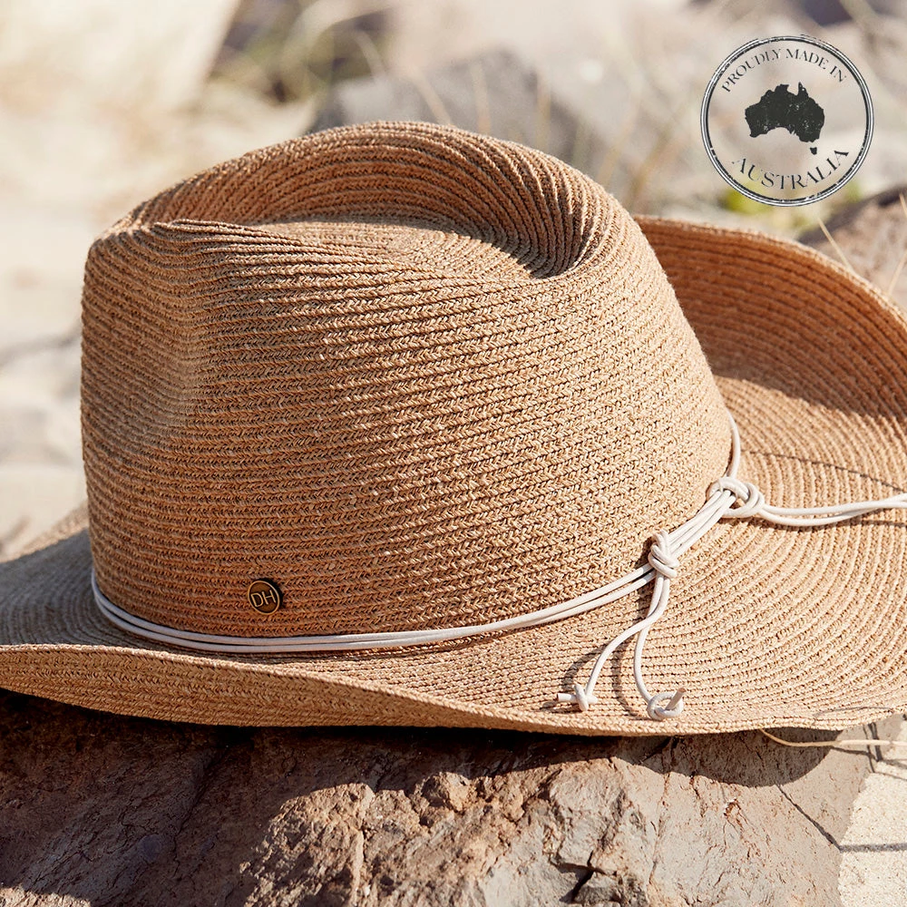 The Bedarra supports an 8cm wide brim which has a high quality, memory wire in the brim edge so it can be shaped as a cowboy style or as a wide brim hat.