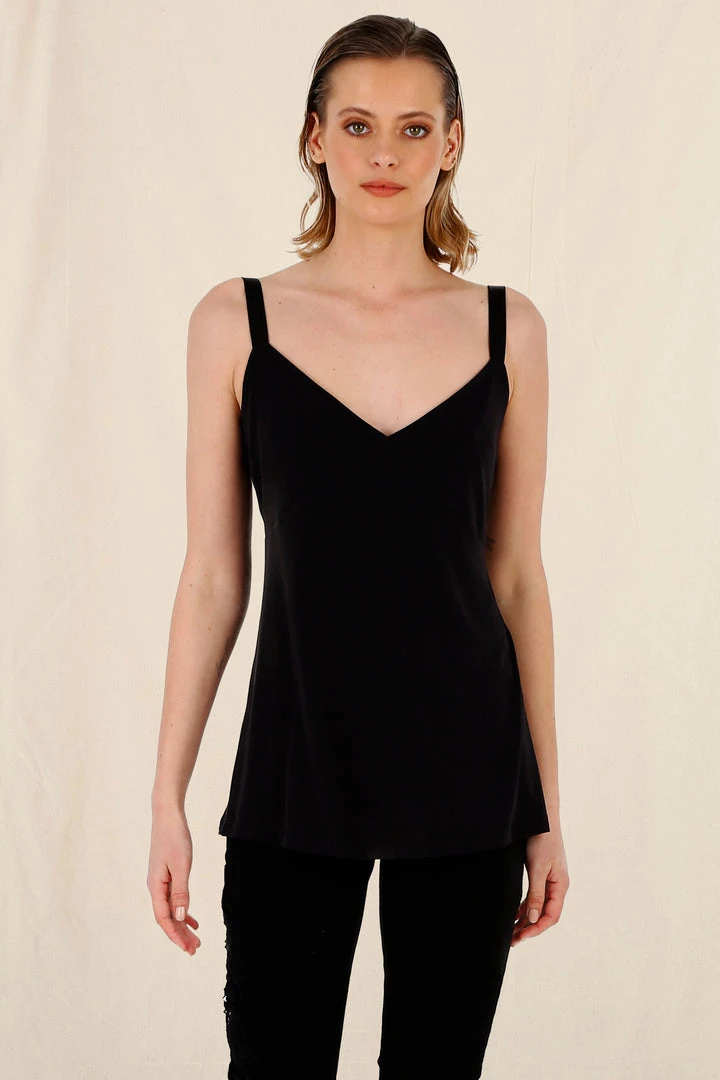 Designed in a polyester spandex blend fabric from Trelise Cooper. An essential camisole to wear under all your favourite dresses or tops. V-neckline for a beautiful finish. Available in black & nude.