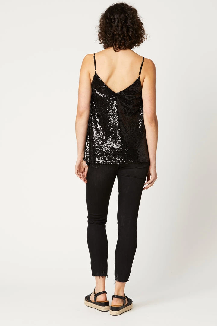 Get set for some fun! The Paradiso Tank Top will take any occasion to a whole new level. This fully lined women’s top has been created from a stretch fabrication and features a V-neck, spaghetti straps, and a relaxed hem. The star-studded sequins are the highlight of this simple, yet show-stopping piece. Just add your favourite denim jean to make the most of any event day or night.