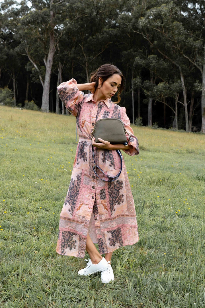 The Bronte Day Bag is a classic handbag style in crossbody form, perfect for everyday use. Featuring a long adjustable navy and white accent strap, and an interior zip pocket, Bronte will be the perfect little summer accessory.