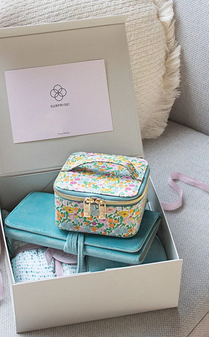 Made with Liberty Fabrics, our ‘Poppy’ Jewellery Cube is a patented design that keeps your cherished pieces safe and free from damage. Luxurious gold zips open to 4 individual zip compartments, a separate pouch, ring holder and earring holder. Protect your precious pieces from tangles, scratches, dints, knots, and loss and place them where you can see them while you accessorise your outfit, storing at home, or while travelling. Tonic Jewellery Cubes are designed in Australia with care, quality and thought.