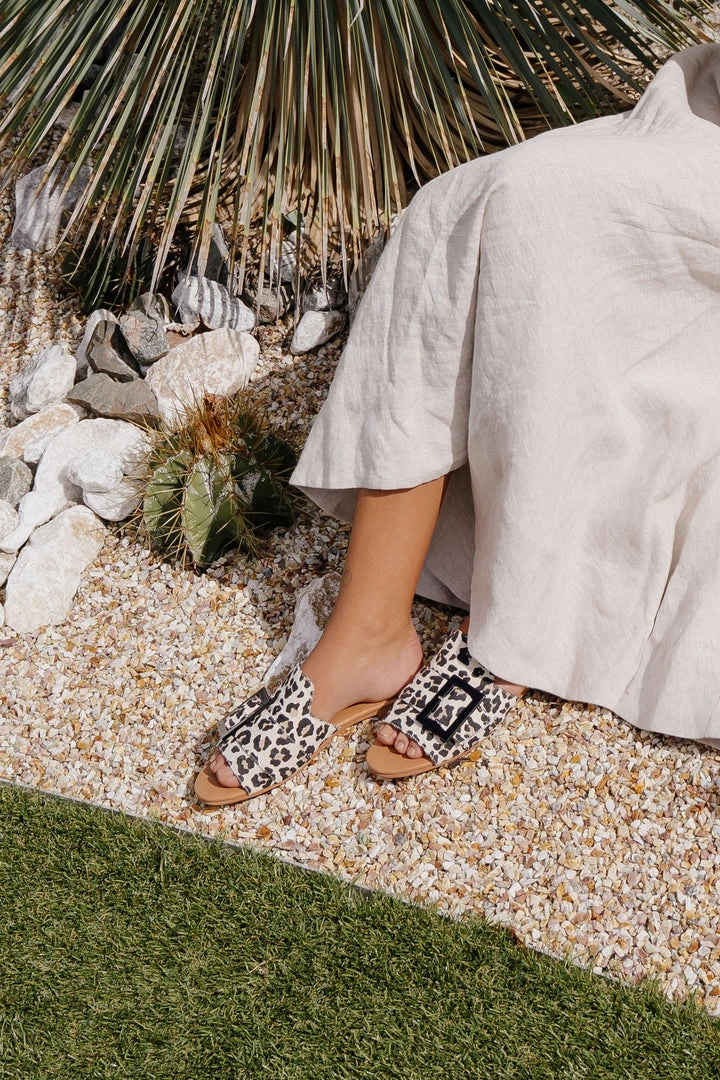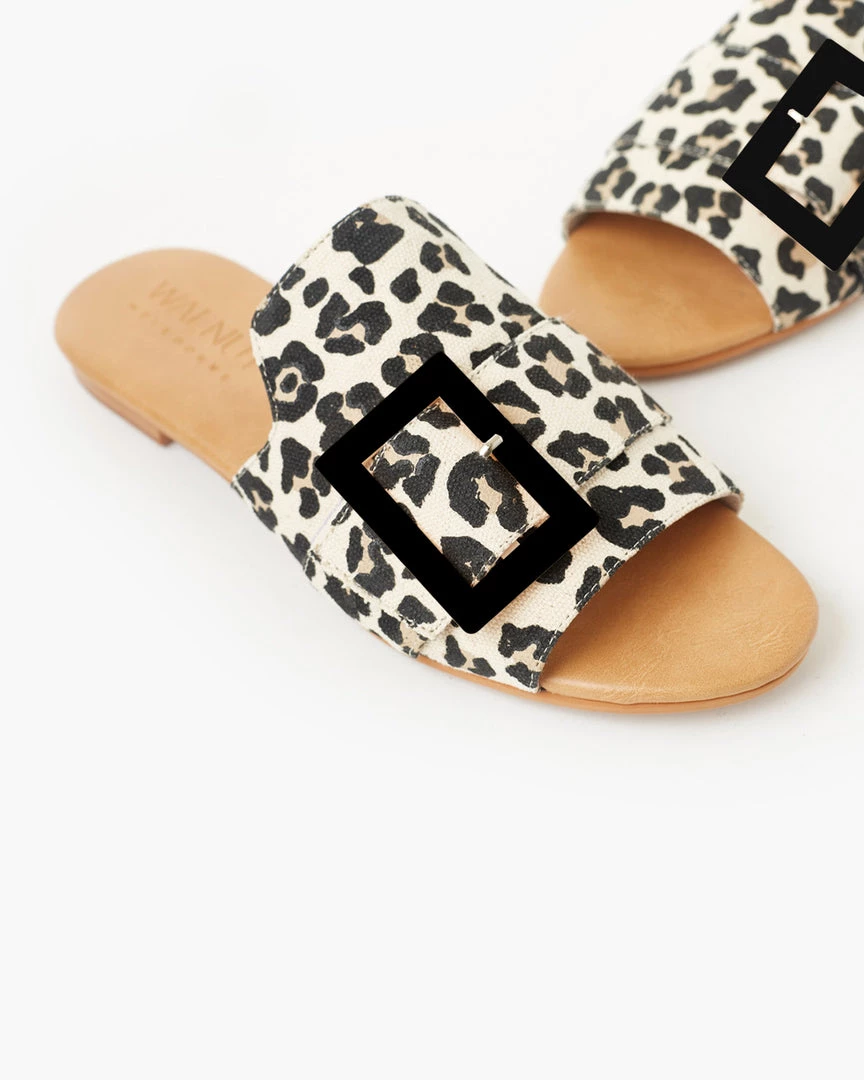 Every wardrobe needs a good pair of slides! The Meadow slide is a fab summer sandal with full coverage and a feature tortoise shell patterned buckle. With a padded in-sole in, this warm and summery ginger leopard print slide will be your go-to of the season.