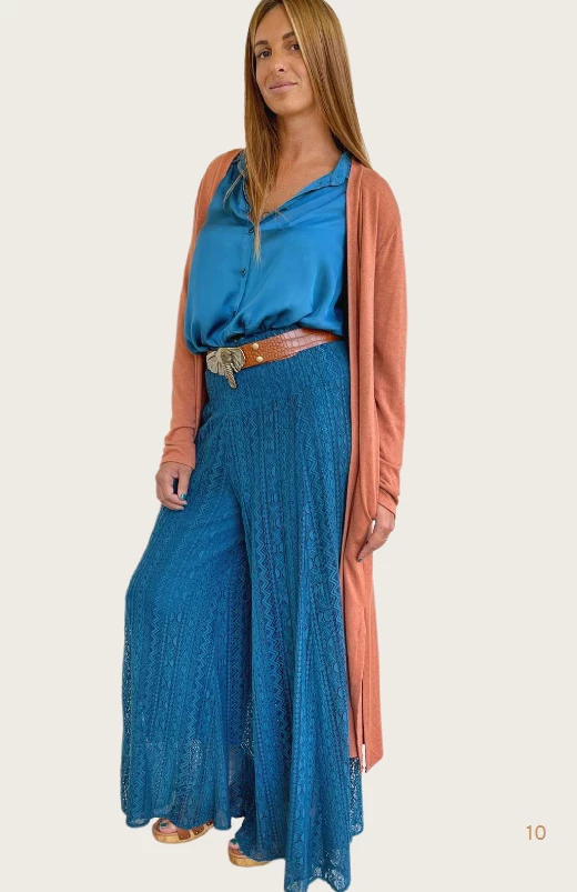 Beautiful Boho Lace Pants in stunning Pacific Teal.