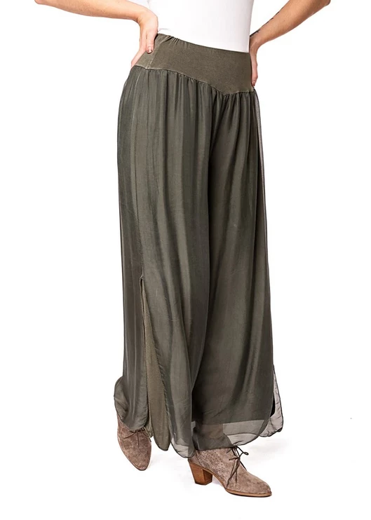 Imagine – Khaki Silk Gia Pant with Split 10IM2184