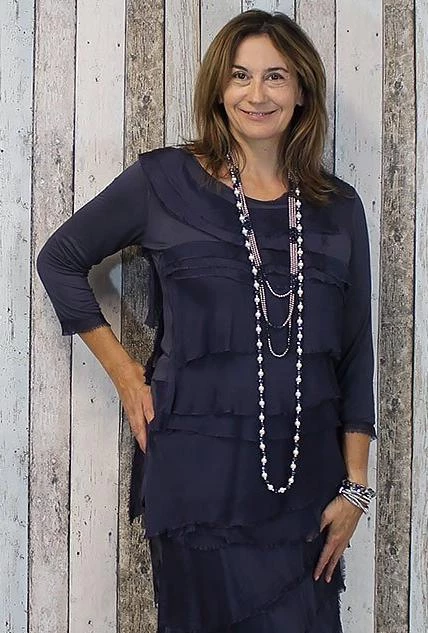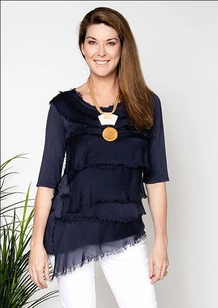 Imagine – Navy Fleur Top Silk Ruffle 3/4 Sleeve 10IM2374N
