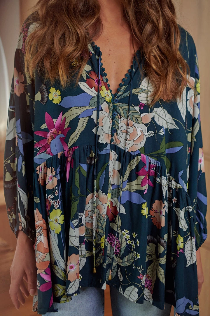 The Eucylptus Print Chloe Top will be your new favourite pieces. Featuring a generous flowy cut, making it the perfect everyday Boho blouse. We like to style ours with some jeans and a pair of boots for the perfect everyday boho look.
