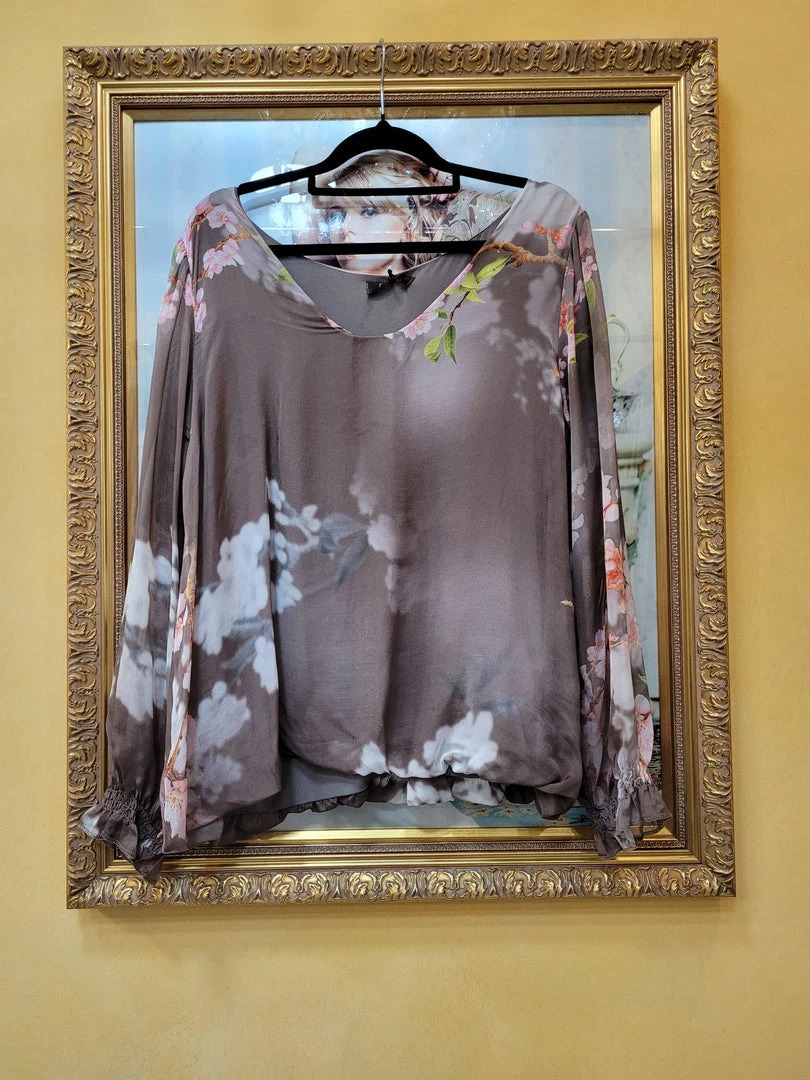 Rosa Jojo – Taupe Floral Silk Top LO-6085F