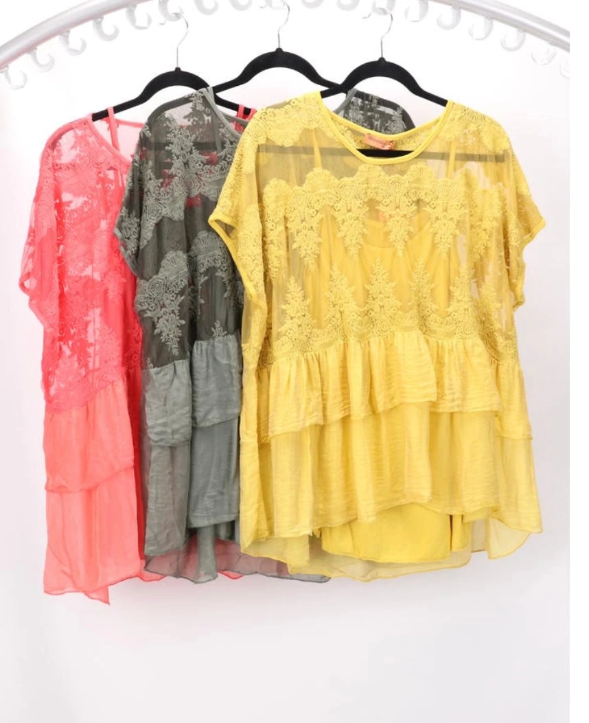 Rosa Jojo – Coral, Mustard or Sage Green Silk Top LO-5937