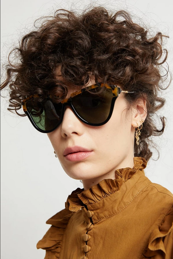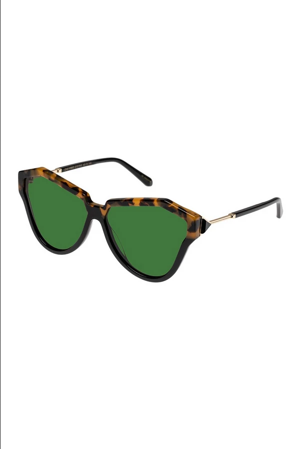 An update to the iconic Karen Walker ‘Number One’ silhouette, this edition provides the best of both worlds, splicing black with Crazy Tort. Its lighter and finer frame is complemented by glam gold tone metal and Crazy Tort temples and a triangle inlay referencing the original KW arrow.