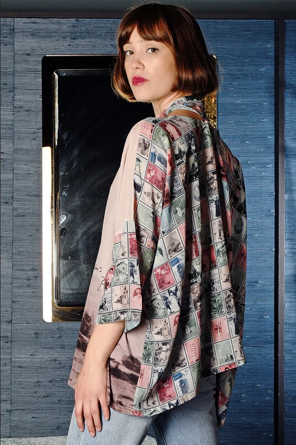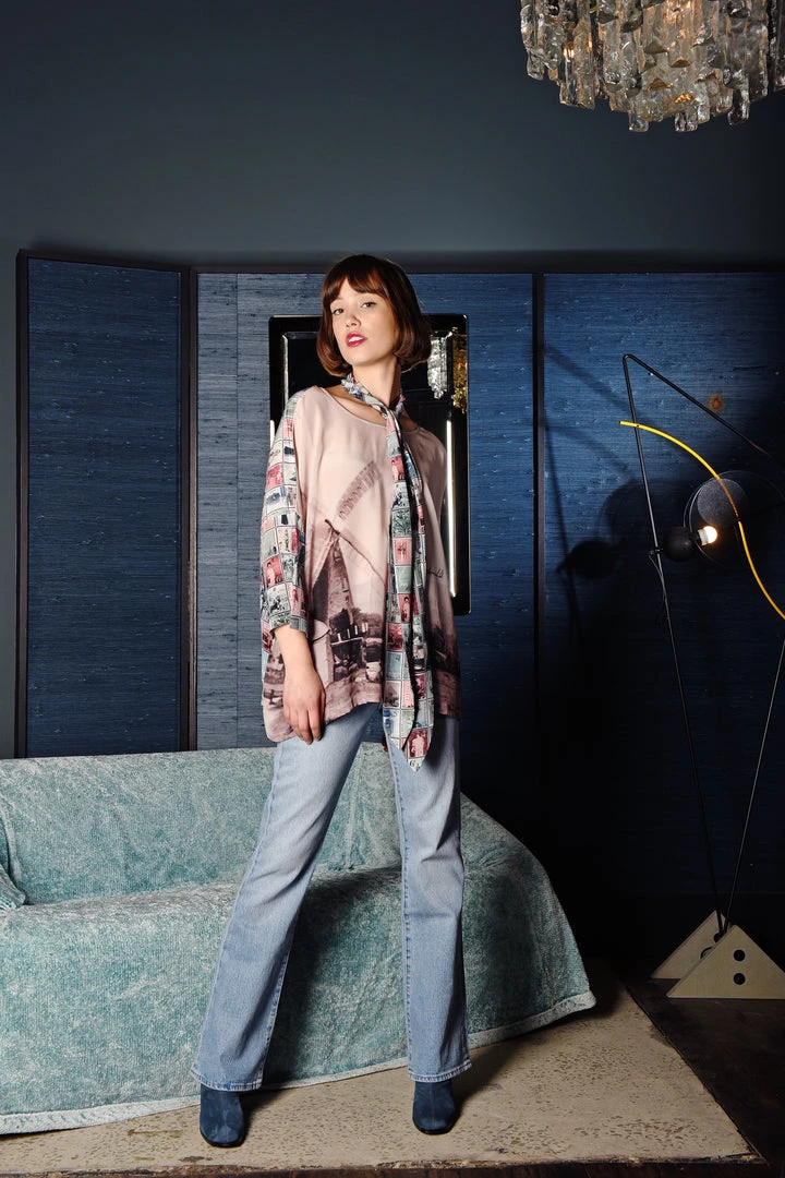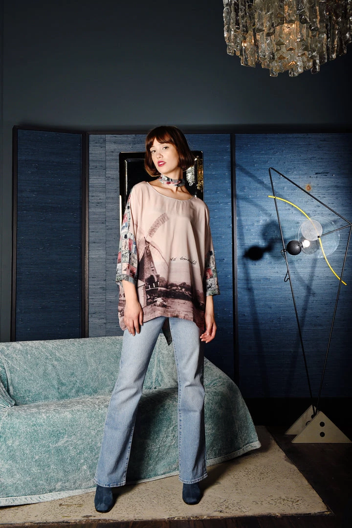 Another beautiful “Date Line” silk top with a stunning combo of patterns. This top is reversible so it can be worn either way. It is so easy to match and wear it will soon become one of your favourite pieces.