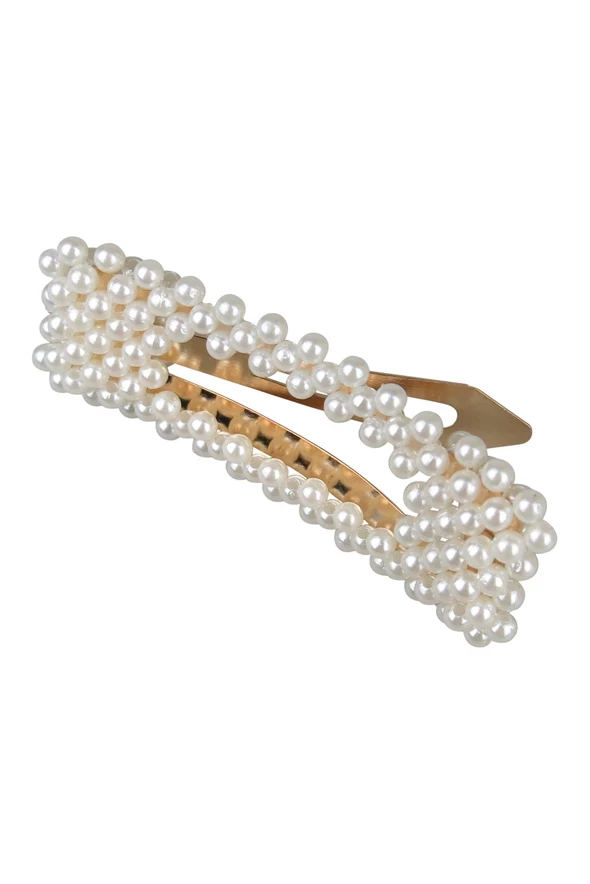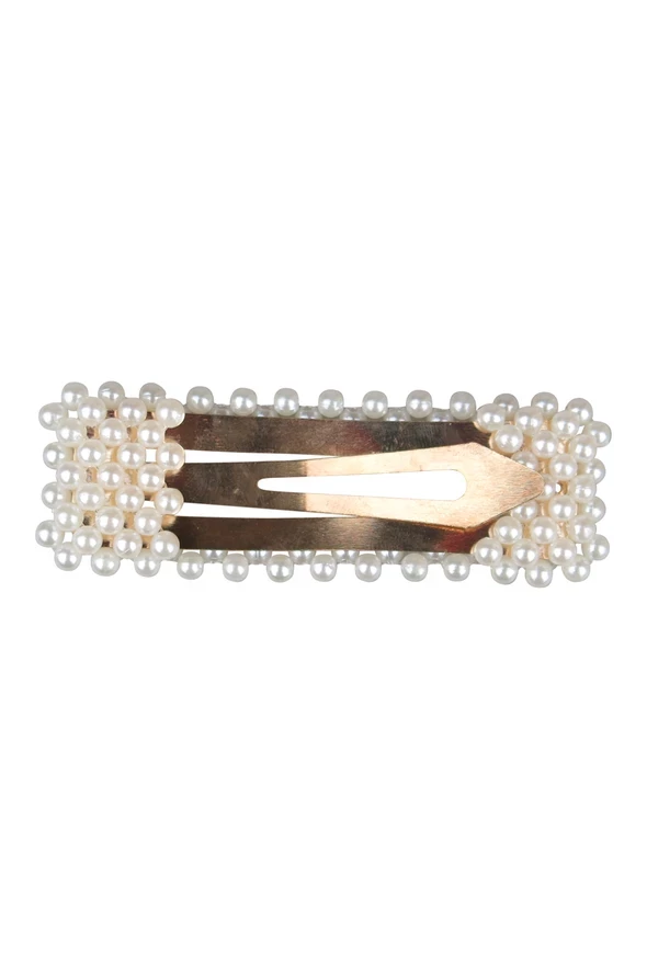 Elevate your look with this stylish Adrienne pearl hair clip, a snap clip design embellished with faux pearls for a touch of elegance.