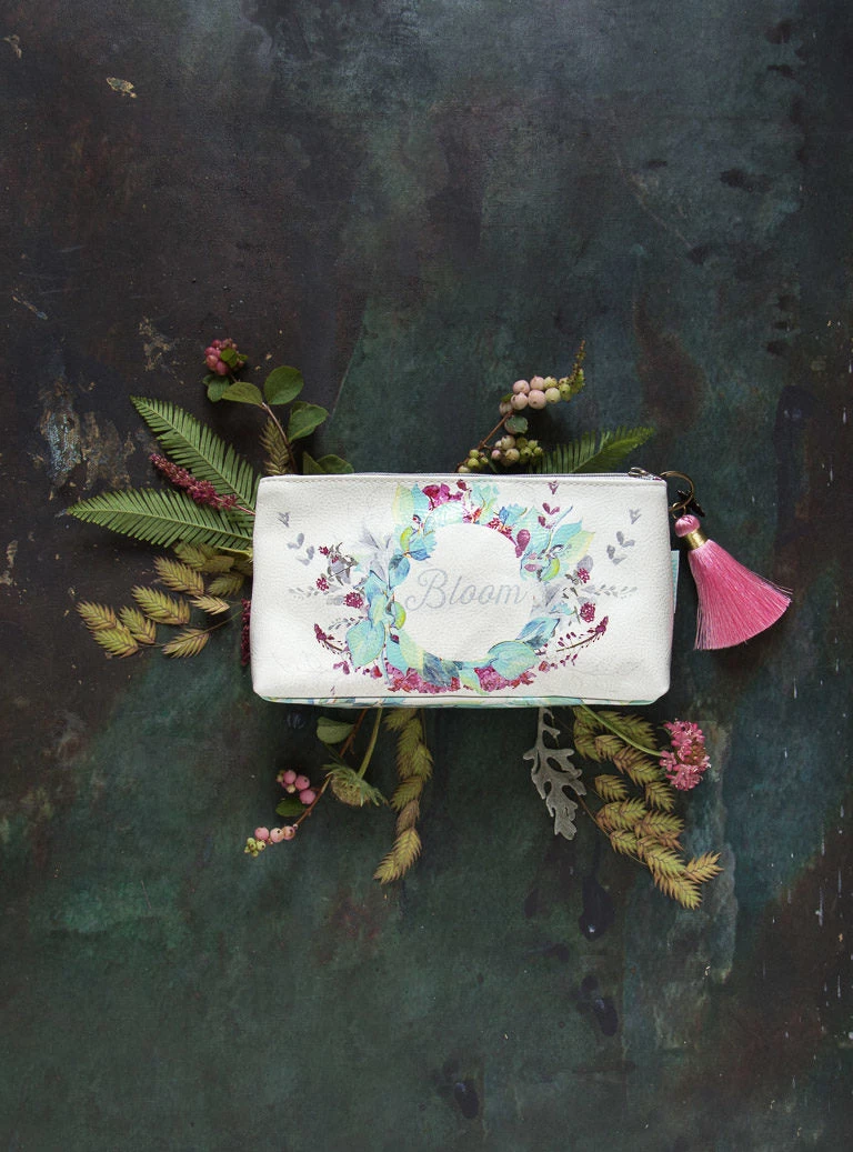 This small pouch is a great size for many different uses! Great make-up pouch or could be used to store stationary or hair accessories or other bits and pieces. 255mm x 125mm with 50mm wide base. Made from durable oiled cloth material lined with gorgeous colourful print. Zip closure with stamped metal lotus charm.