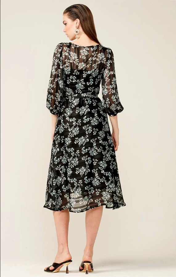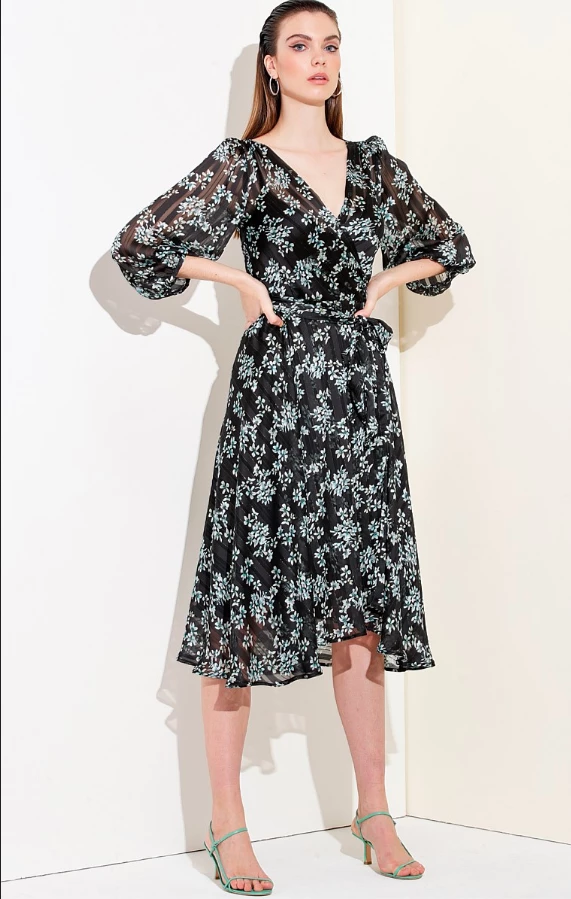 Sacha Drake – Daphne Wrap Dress – Black Aqua Floral