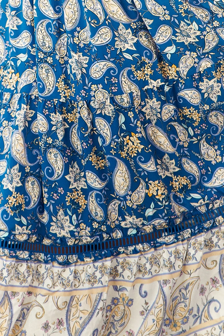 The Blue Fleetwood Print Frida by Jaase is the gorgeous piece that every girl needs in her wardrobe for the summer! Made in the softest Rayon with Short Sleeves and a cute contrast border print, this is truly a bohemian lover’s dream. Pair with some Sandals or ankle boots for a beautiful Spring Summer look we love.
