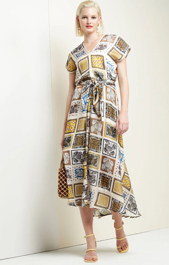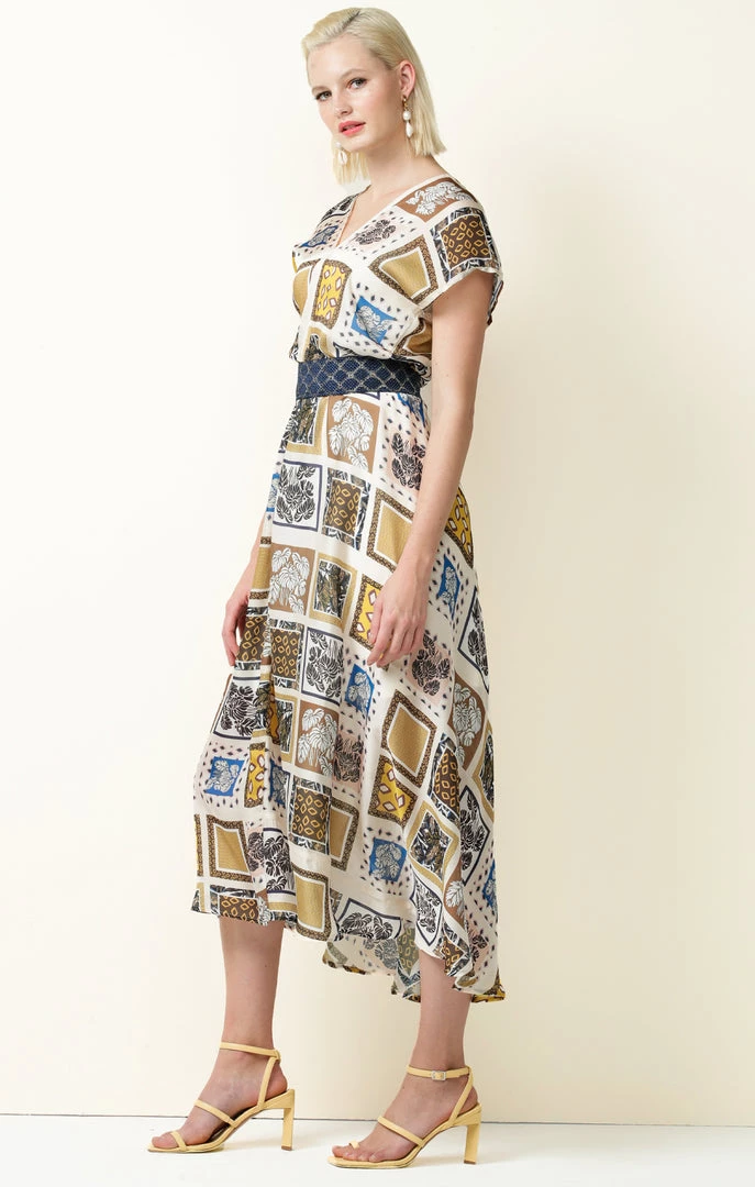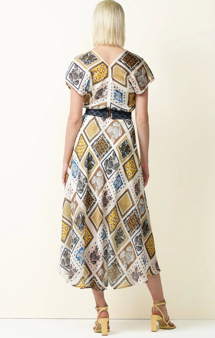Sacha Drake – Hey Day Midi Dress – Mustard Scarf Print