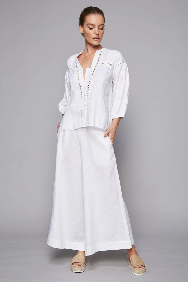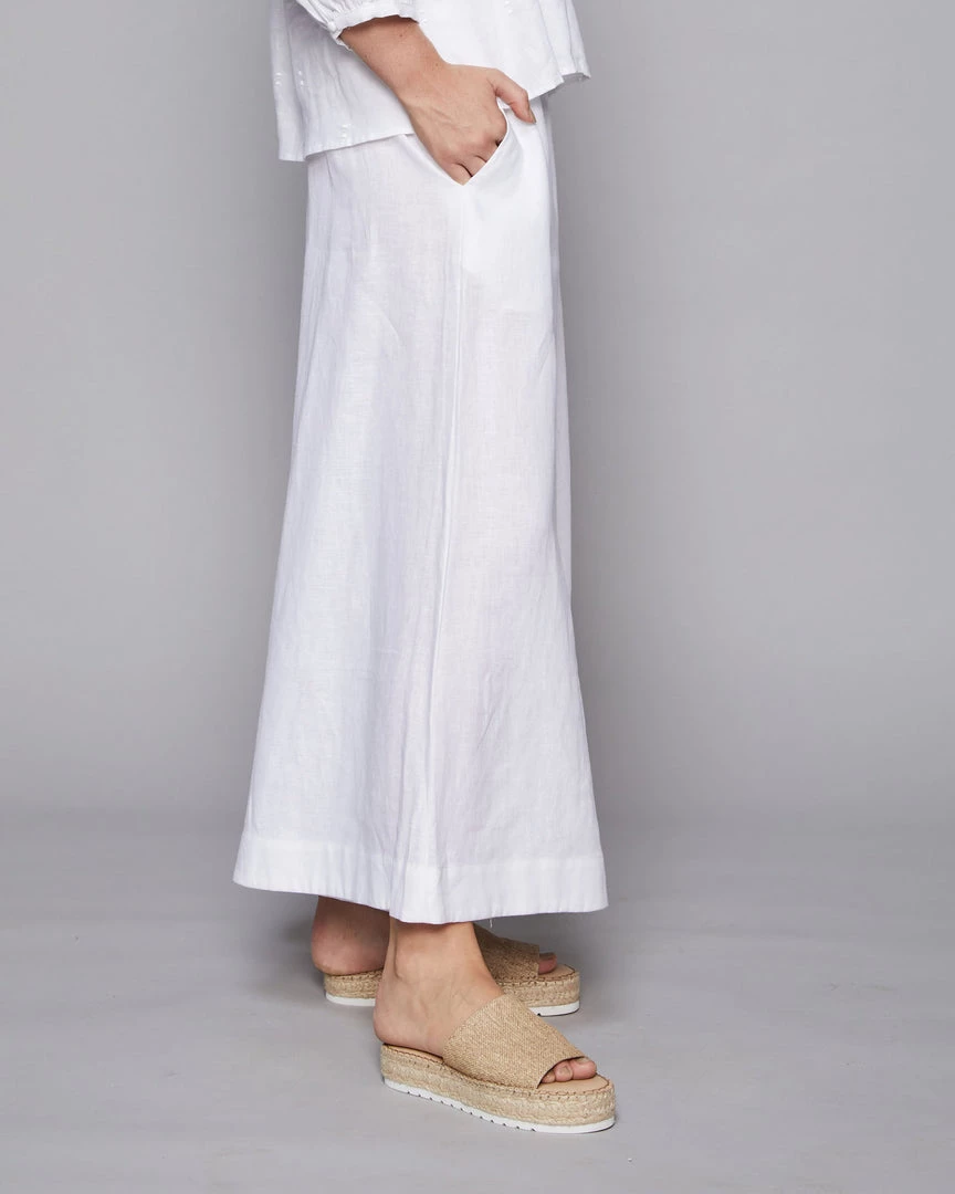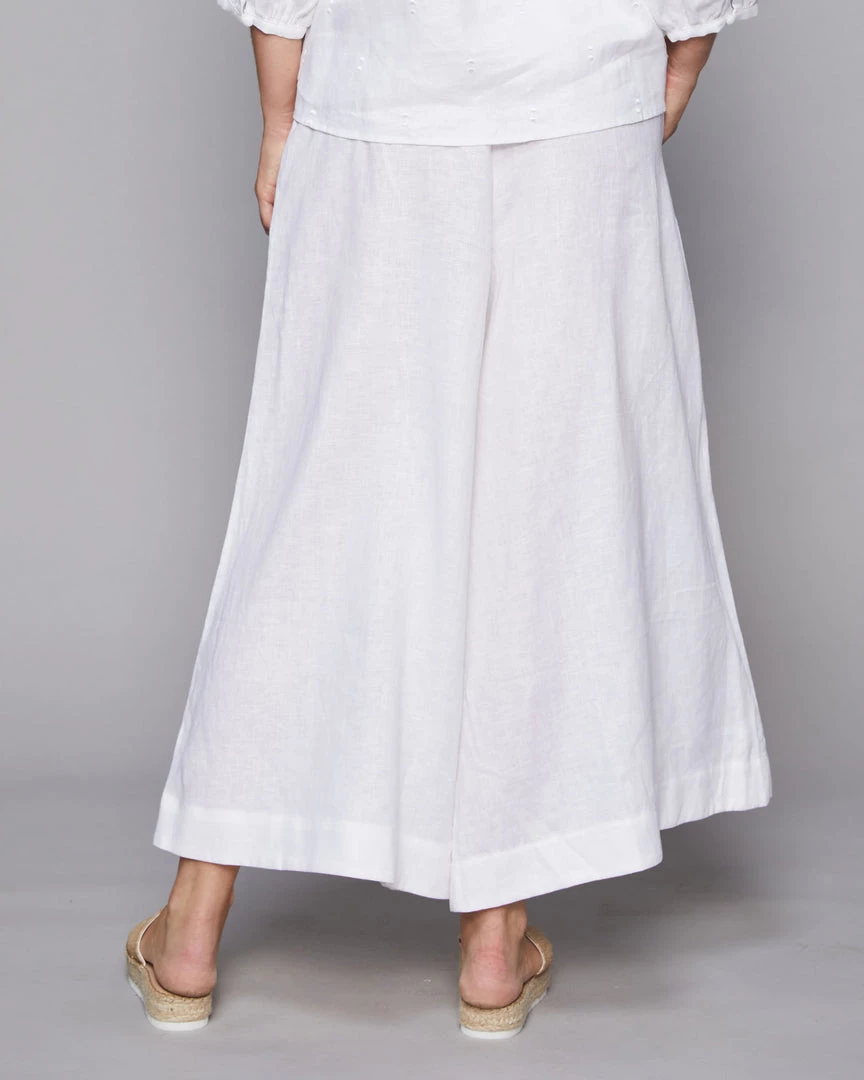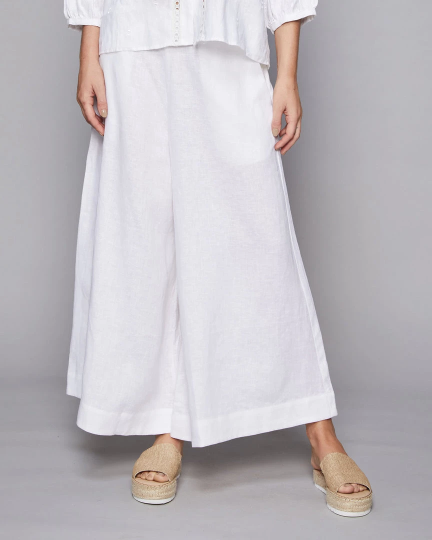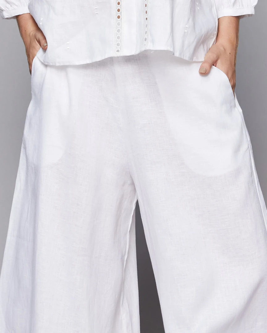 Court pant by Zoe Kratzmann clean lines and maximum movement define the court pant. a flat front and softly elasticated rear waist create a flattering silhouette. the sweeping ¾ leg pushes the boundaries of a wide leg pant. angled pockets seal the deal on this winning style.