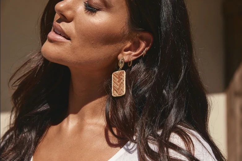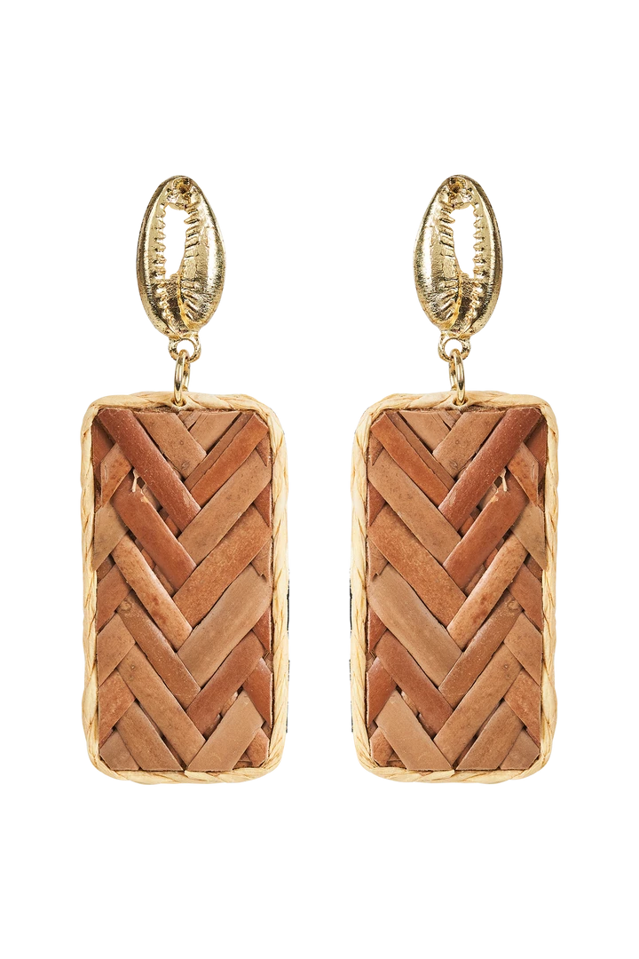 The Kala Flax Earring will reflect your need for natural living. Created from cane wood, brass, and iron in a rectangular shape.