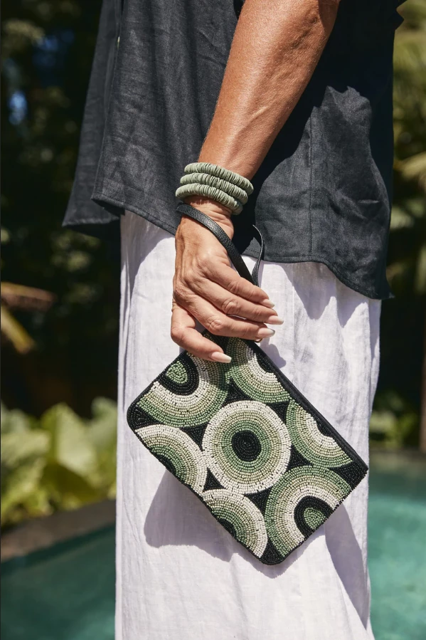 Express your fun wild side with the Urban Clutch Bag, featuring a detachable hand strap and embossed tribal-themed beadwork designs. A bright fun accessory to lift your spirits with every use.