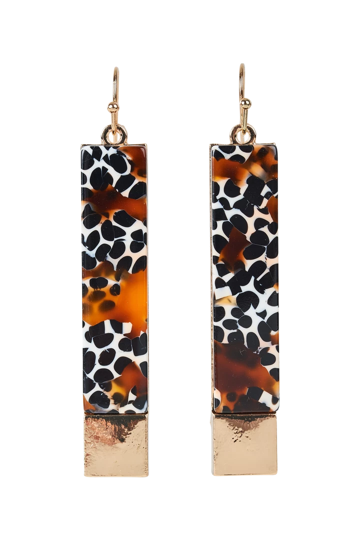 Created from acetate and alloy, the narrow rectangular design of the Villager Pin Earring with interlocking gold hook earrings will add some fun and colour to your Summer vibe.