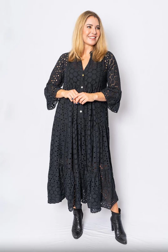 The Italian Closet – Black Bryony Broderie Anglaise Midi Dress