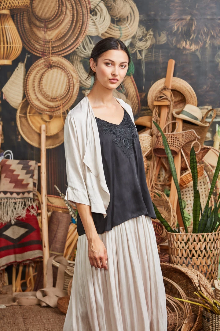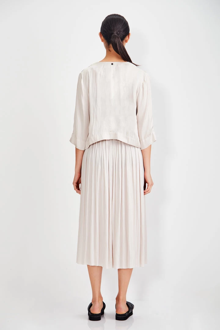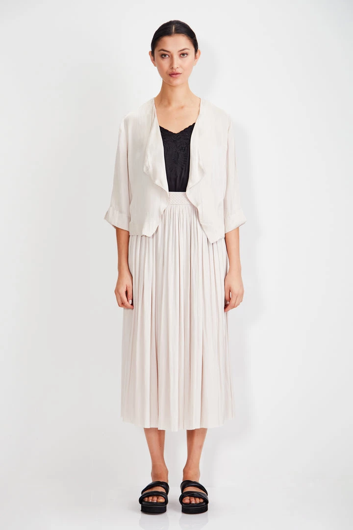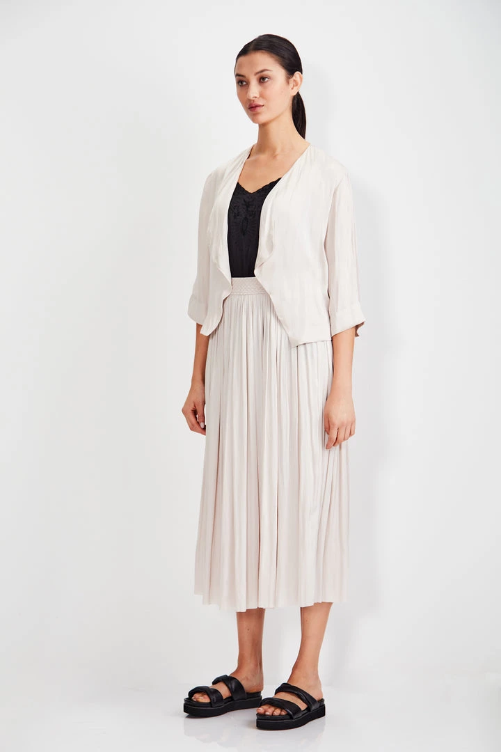 The Verge Juggle Skirt in luxe liquid satin is a classic style that can easily be dressed up or down. Featuring a comfortable elastic waist band, mid-length and flowy shape, it is perfect to layer up with other liquid satin styles for a dressy outfit or pair back with a simple tee for an effortless warm-weather look.