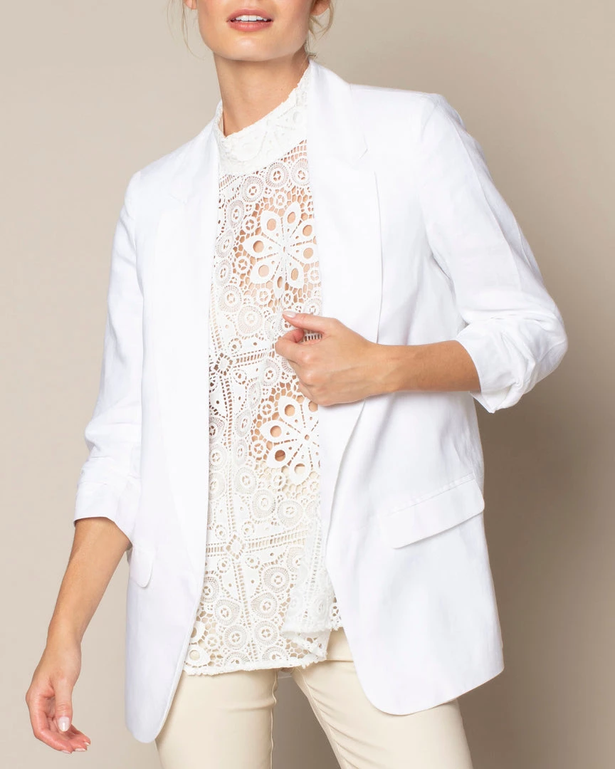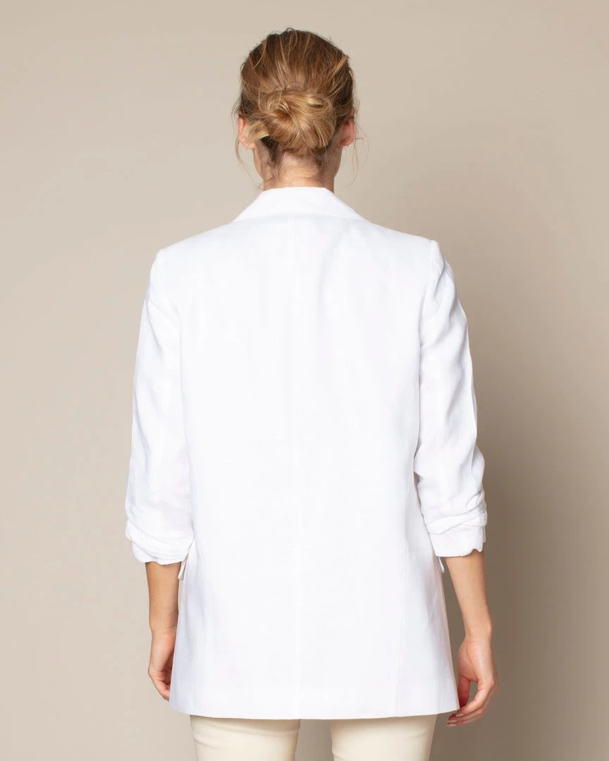 Entitle jacket by Zoe Kratzmann a lightly structured jacket is the perfect solution for effortless yet elevated spring dressing. this piece adds polish and edge to both dresses and pants. a ¾ ruched sleeve has a relaxed, slightly undone feel. the entitle is the ideal choice for chic everyday dressing.