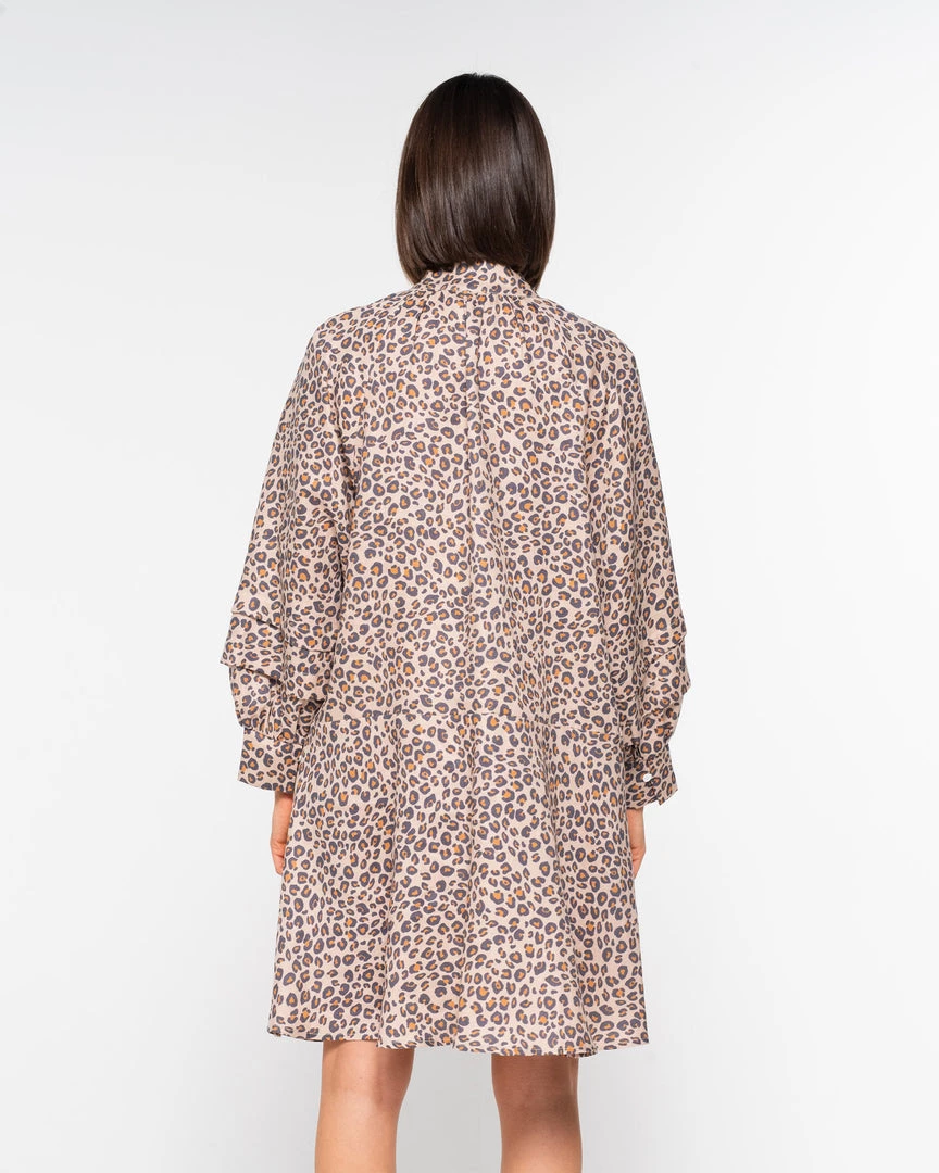 the haze dress embodies a sense of optimism with soft movement in it’s skirt and a romantic flourish in it’s sleeve. small mother of pearl buttons create the ideal amount of detail in this fresh and effortless piece. crafted in our signature print leopard fabric the haze will fast become a favourite. team yours with sneakers or a boot for enviable style.