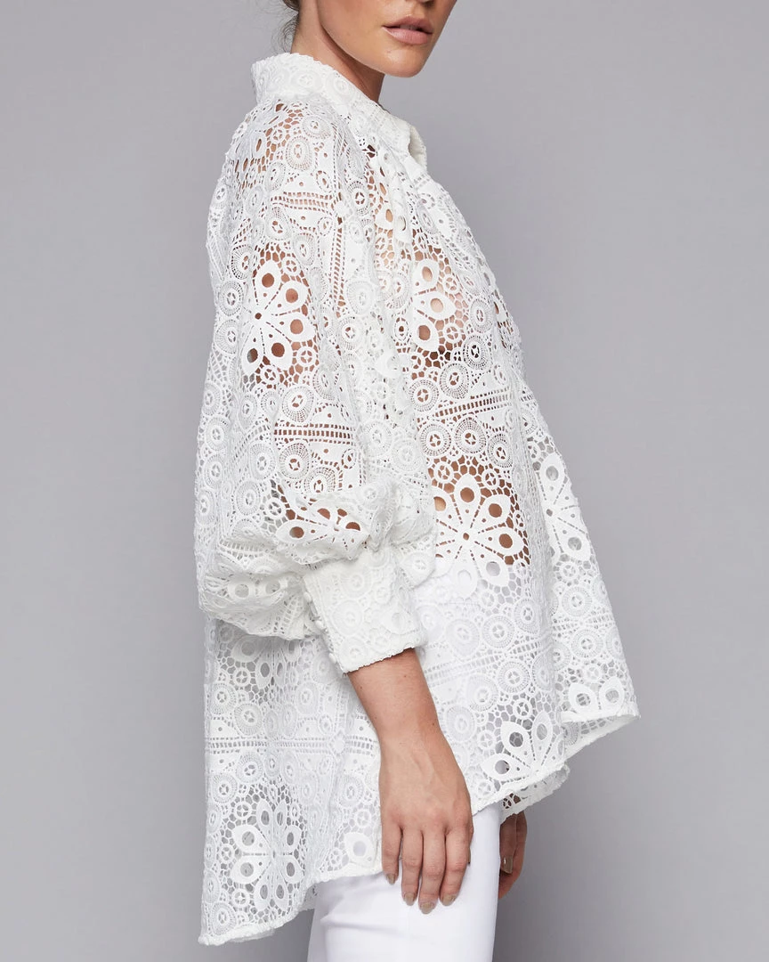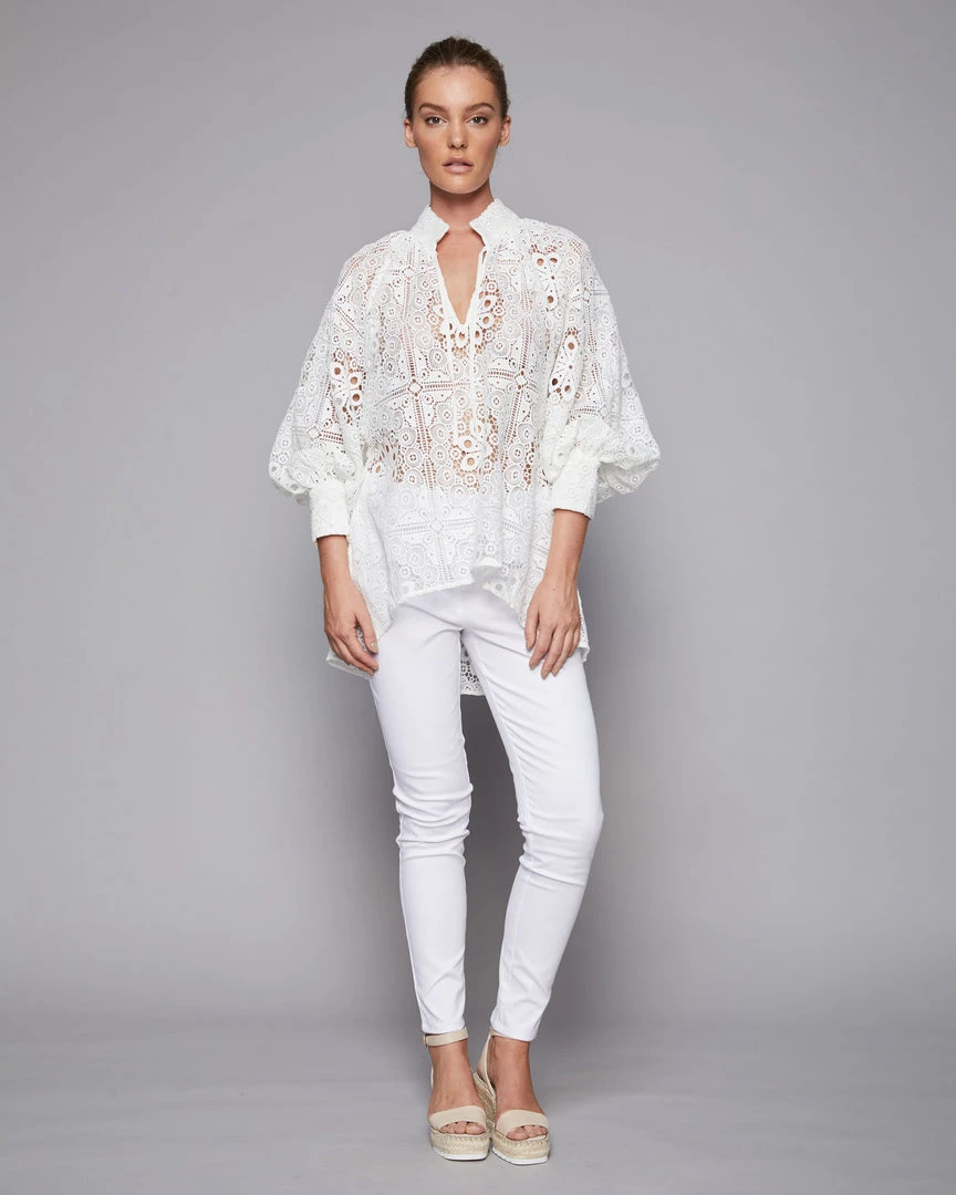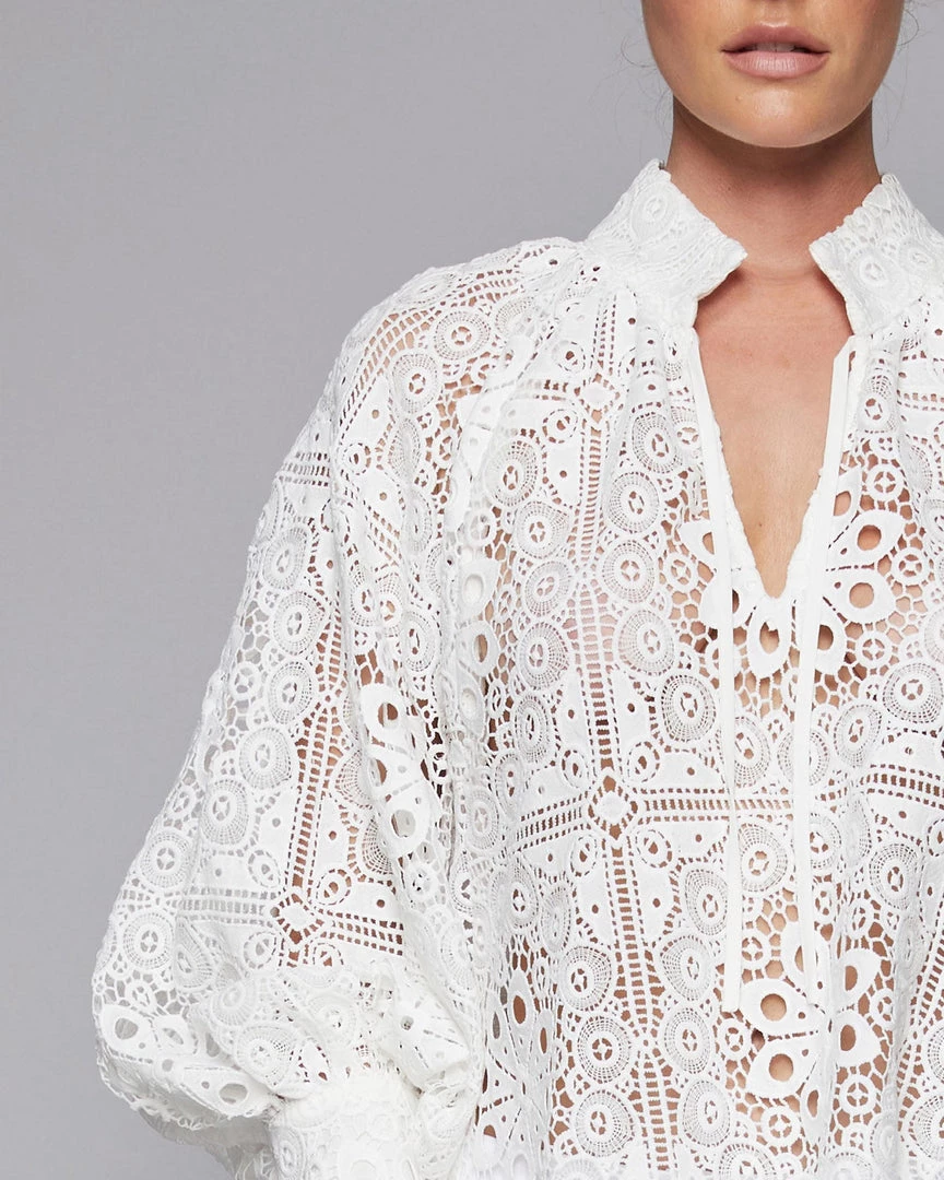 The plunge captures an artisan and romantic aesthetic. easy-fitting and effortless, this silhouette is ideal for the modern woman. a softly gathered neckline and dramatic blouson sleeve create flattering lines and movement. an a-line cut and steeped (hi-low) hem ensure the plunge is ideal for all body shapes.